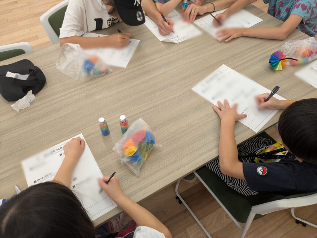 - みんなで学んでみんなでたのしく、いろいろつくったりこうさくしたりするのが、たのしかったです。またみんなでつくりたいです。今日のおふろがたのしみです。