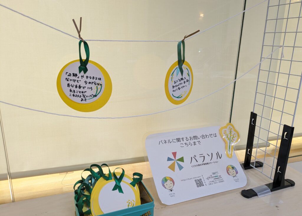 みなさまからのメッセージをミモザカードに書いて飾って下さい。
