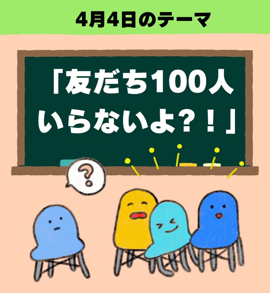 「友達100人できるかな♪」という歌があるけど、友達ってやっぱり多い方がいいの?100人もできるの?友達っていないとダメ?友達についてみんなで話してみませんか?